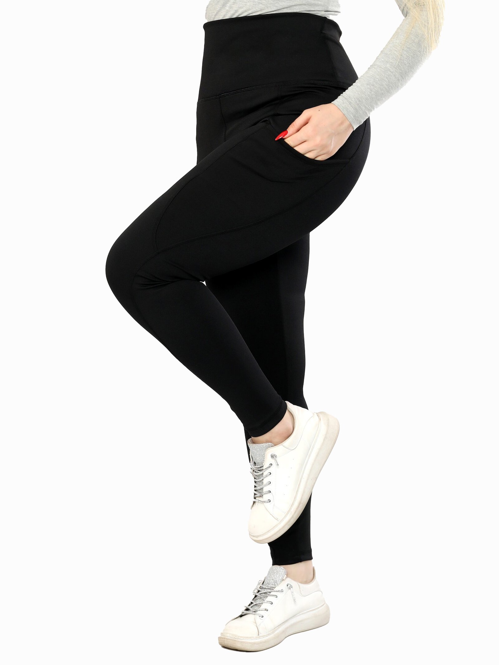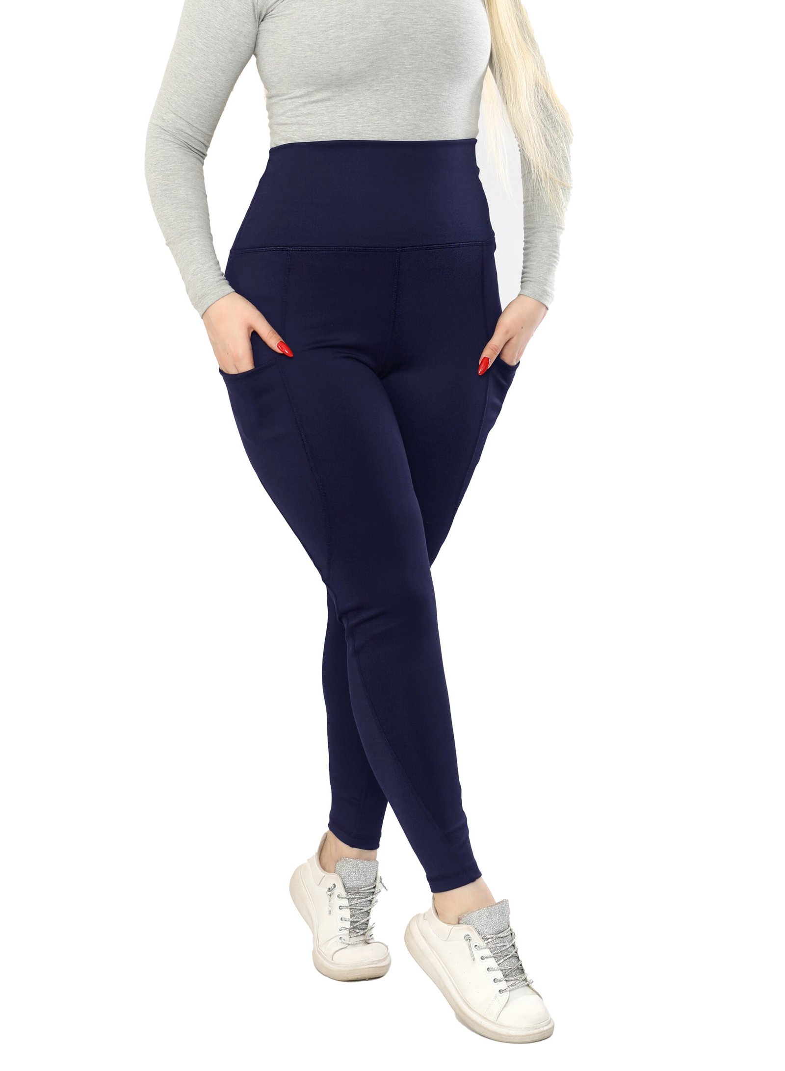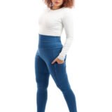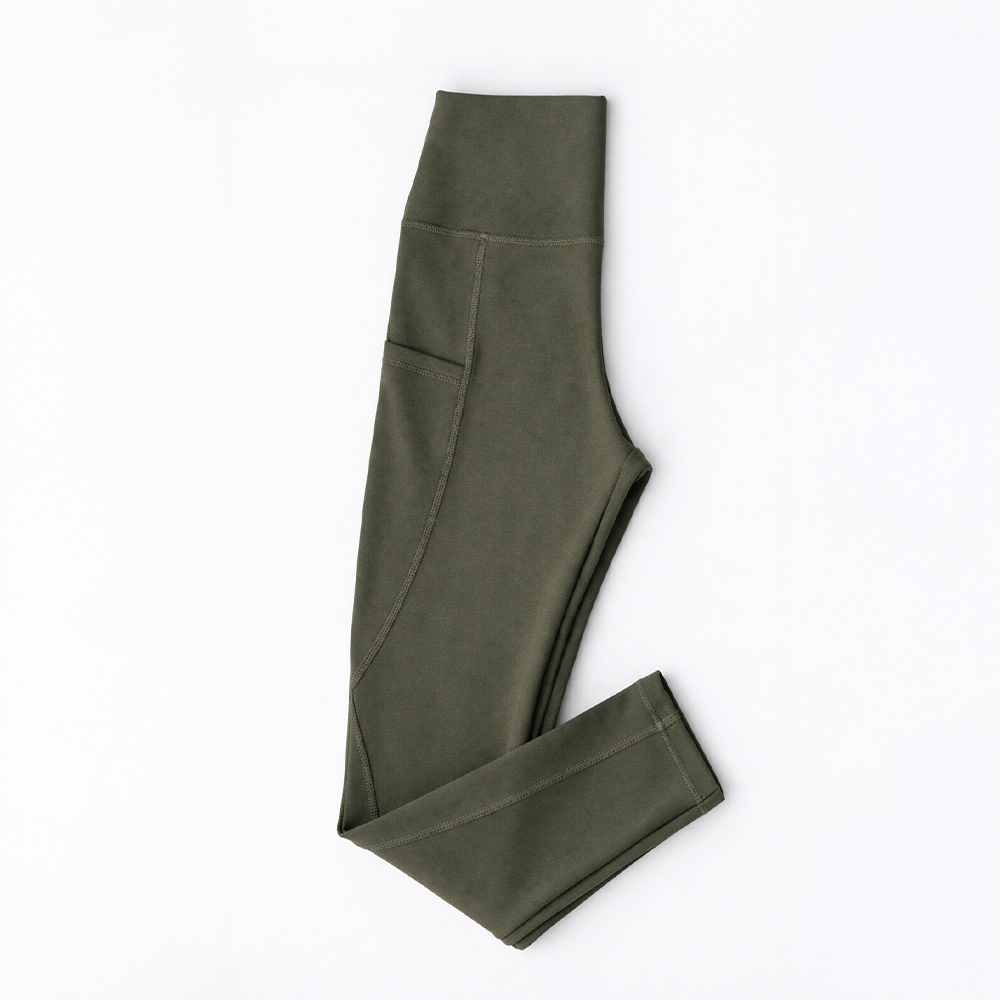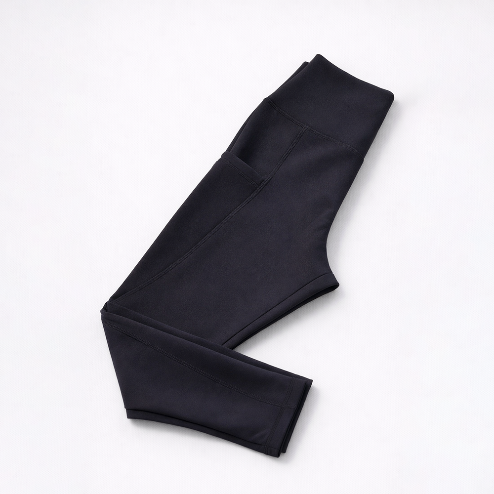 ليجن من الليكرا عالي الخصر مزود بجيب، مصمم لتوفير الراحة والدعم. نسيجه سميك وغير شفاف، مما يوفر تغطية كاملة للجسم ومنطقة البطن. مثالي للتمارين الرياضية والنزهات غير الرسمية.