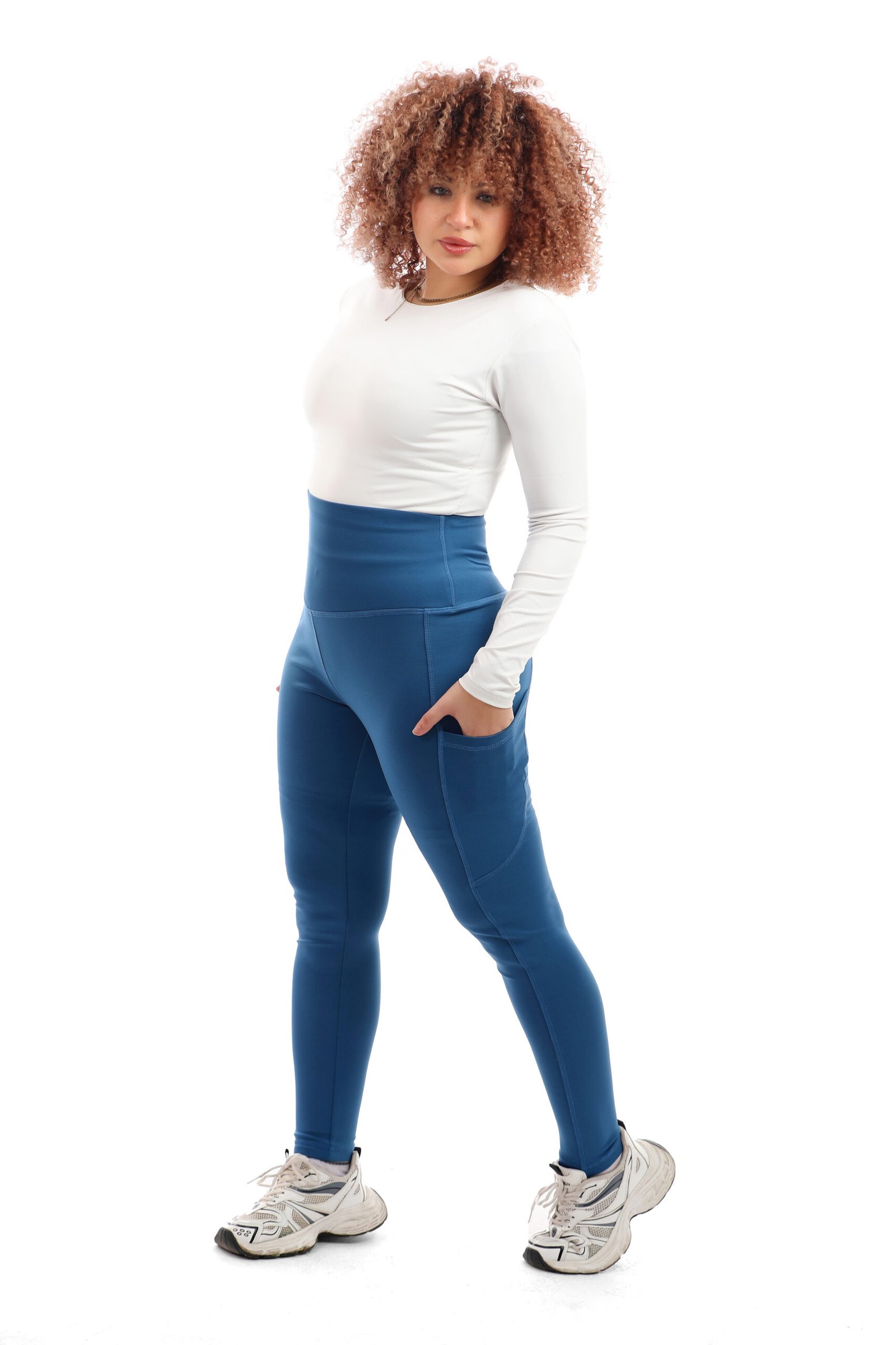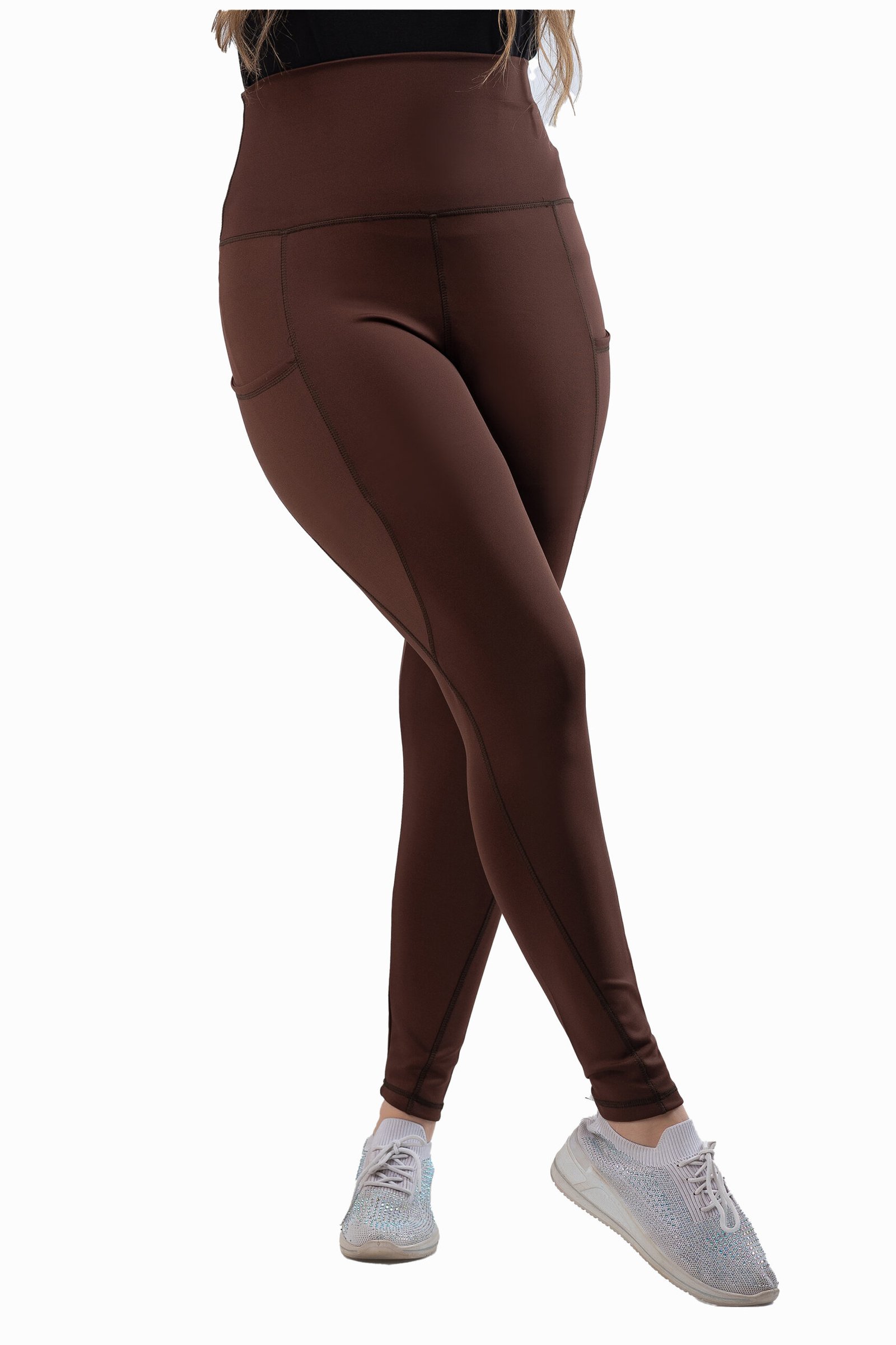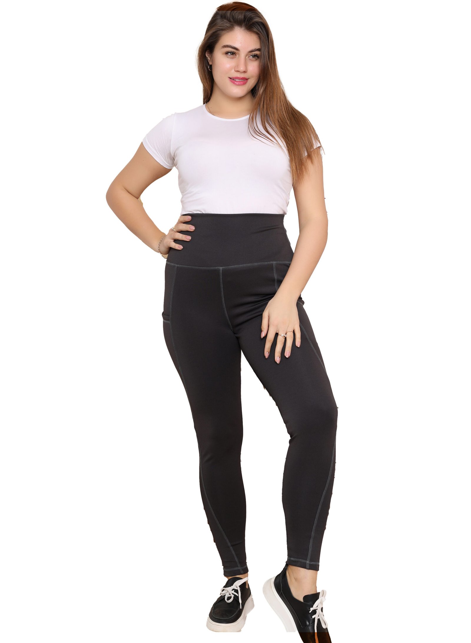 ليجن من الليكرا عالي الخصر مزود بجيب، مصمم لتوفير الراحة والدعم. نسيجه سميك وغير شفاف، مما يوفر تغطية كاملة للجسم ومنطقة البطن. مثالي للتمارين الرياضية والنزهات غير الرسمية.