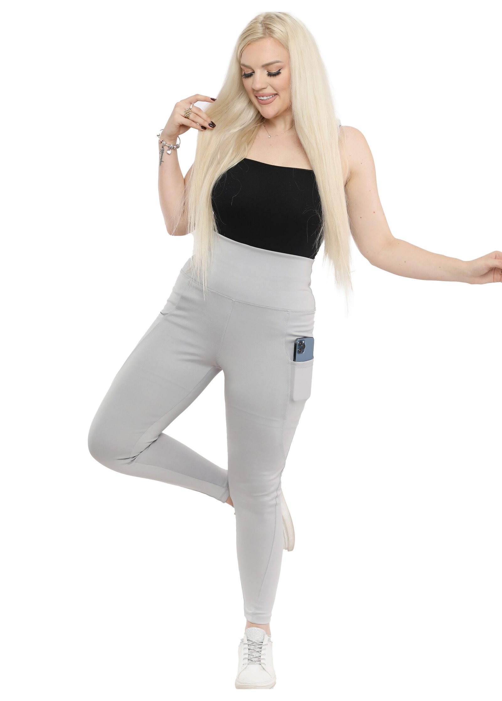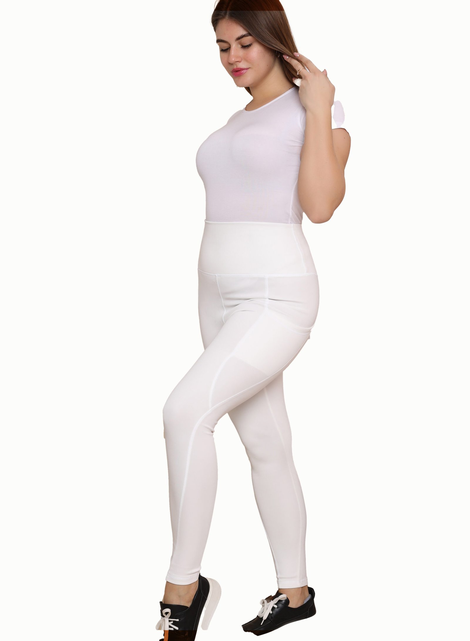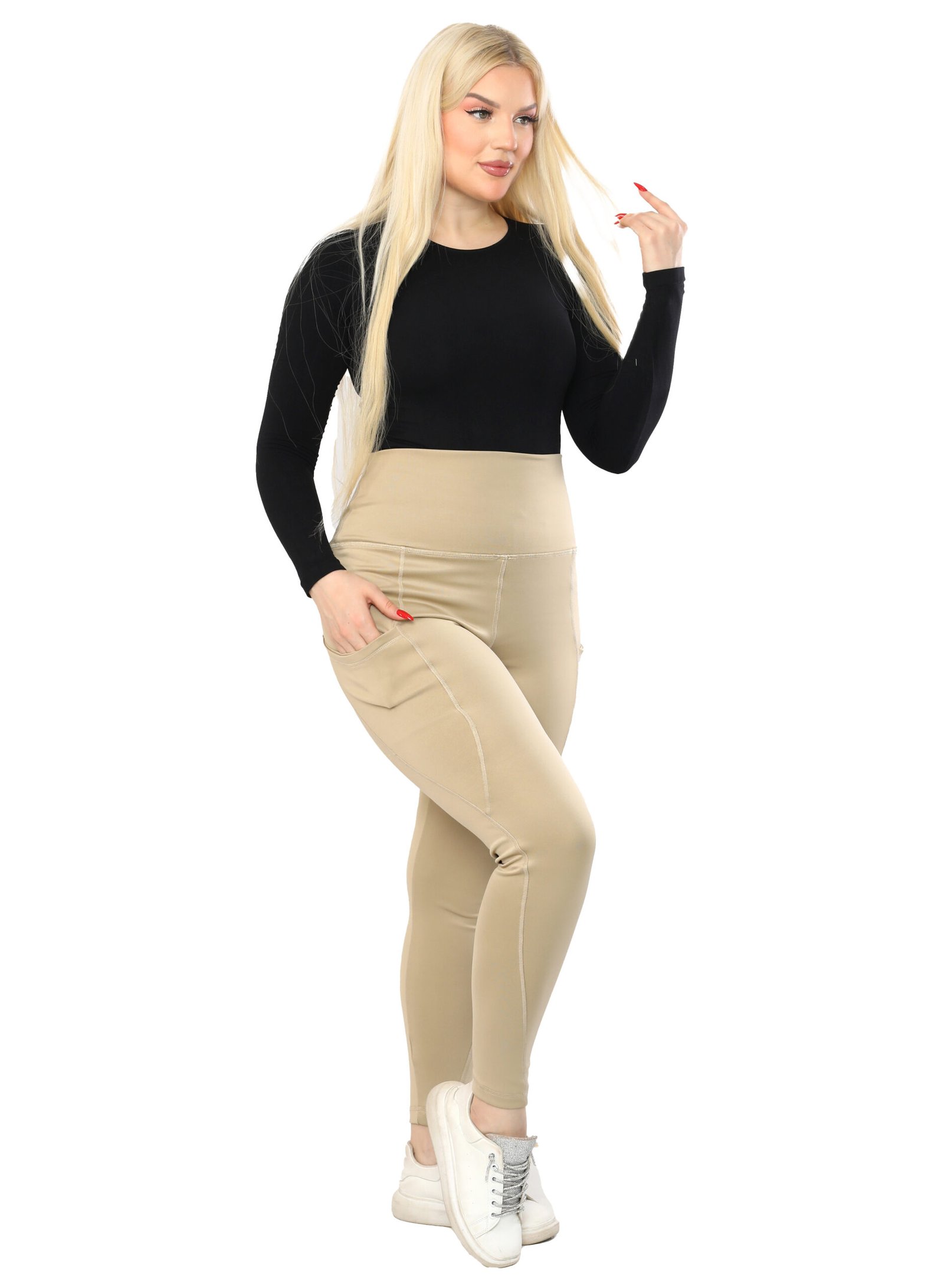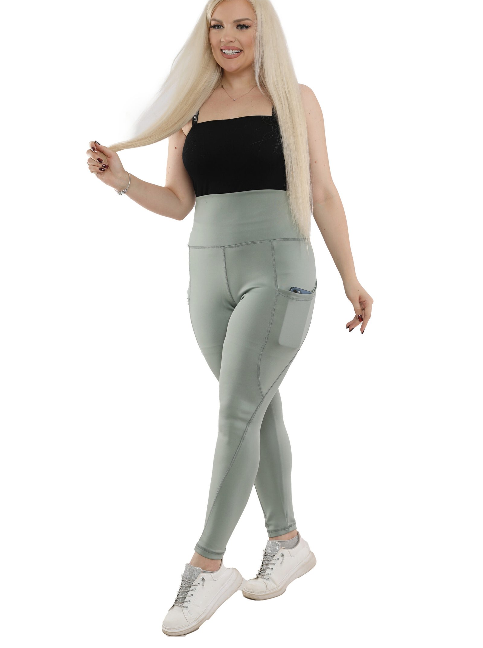 ليجن من الليكرا عالي الخصر مزود بجيب، مصمم لتوفير الراحة والدعم. نسيجه سميك وغير شفاف، مما يوفر تغطية كاملة للجسم ومنطقة البطن. مثالي للتمارين الرياضية والنزهات غير الرسمية.