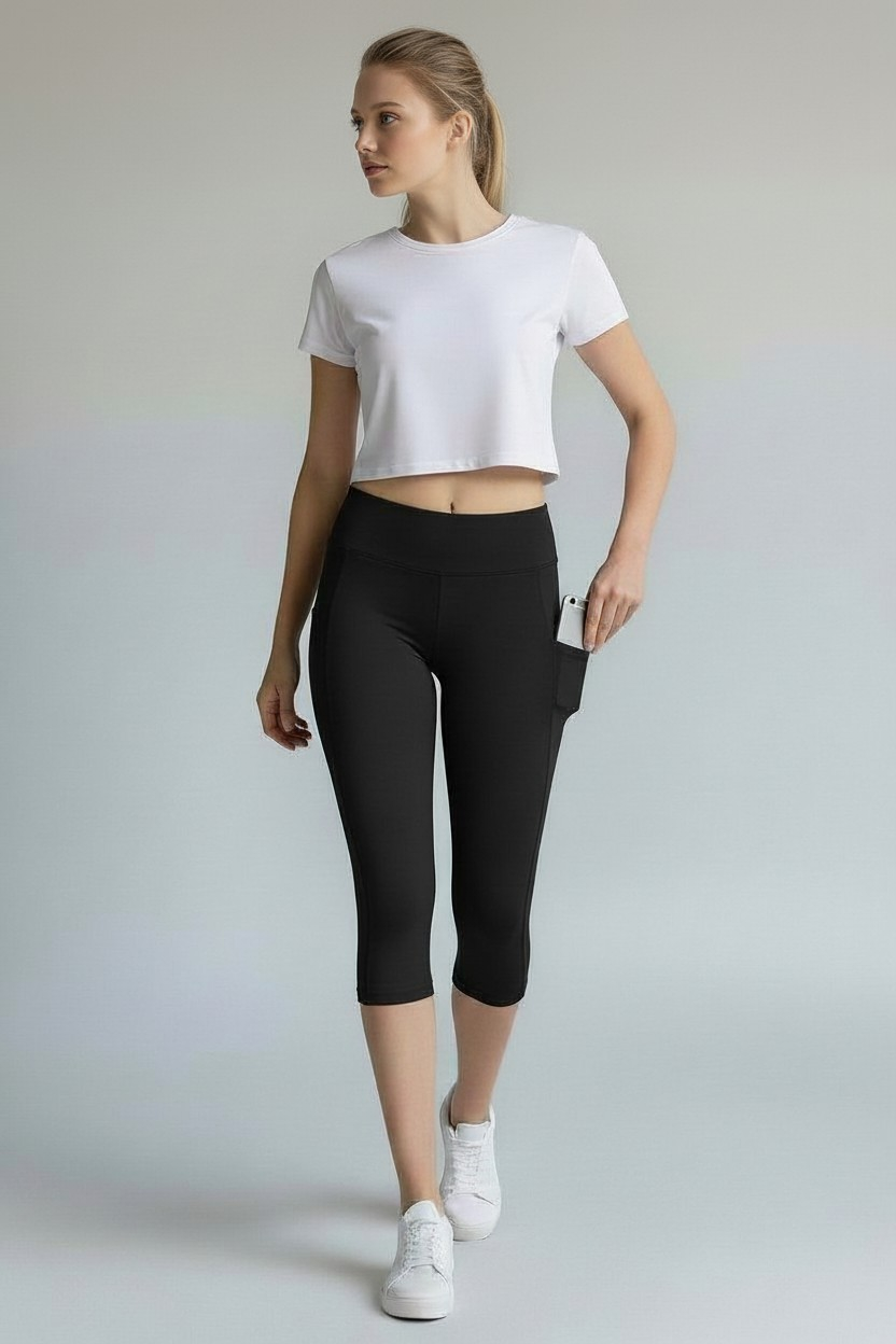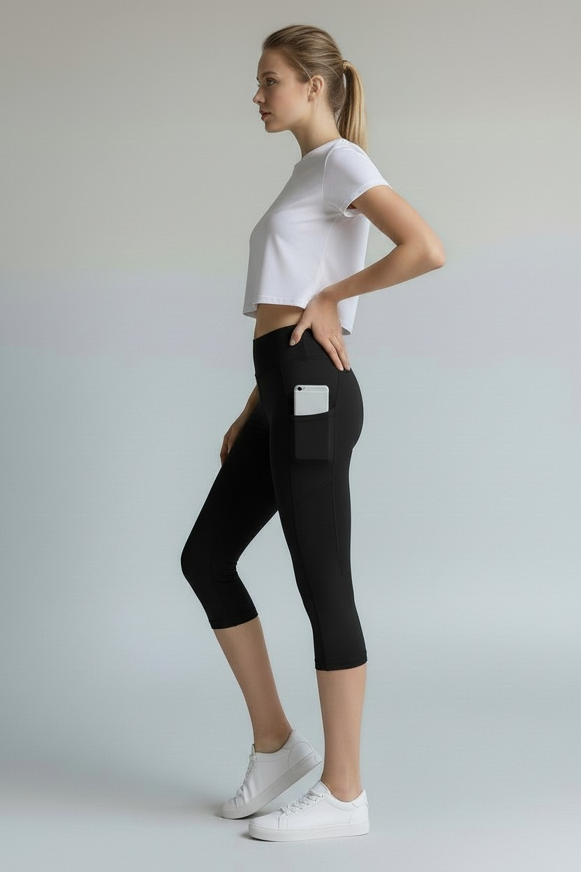 Our High-Waist Bermuda Leggings with side pockets are built for performance. This knee-length model from Its Store combines ultimate comfort with everyday functionality. It is the perfect choice for high-intensity workouts or active outdoor days.