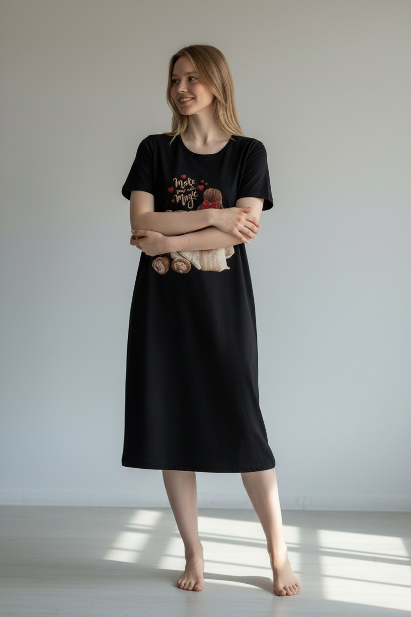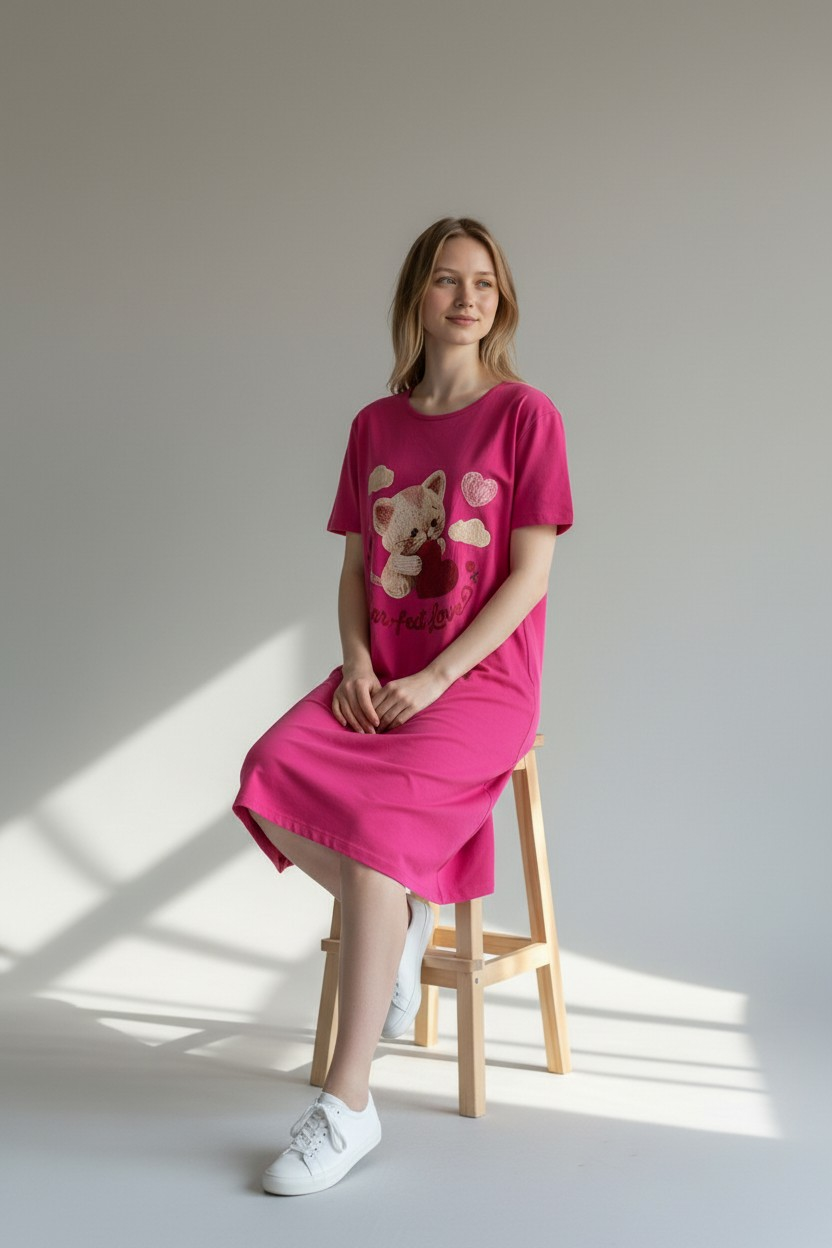 Our Comfortable Cotton Nightshirt offers the perfect blend of style and relaxation. Its Store uses 100% natural cotton to create this soft and lightweight piece. Therefore, it feels incredibly gentle on your skin and is ideal for a restful sleep or home lounging.