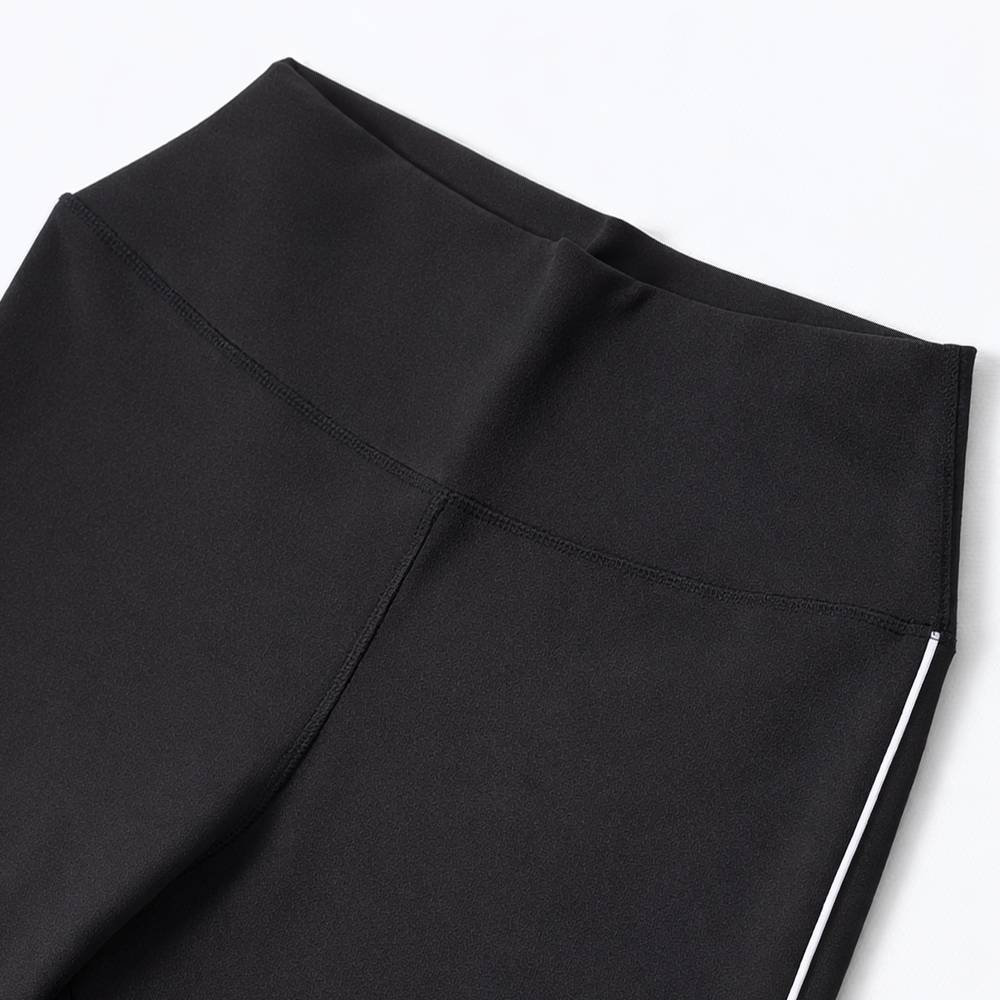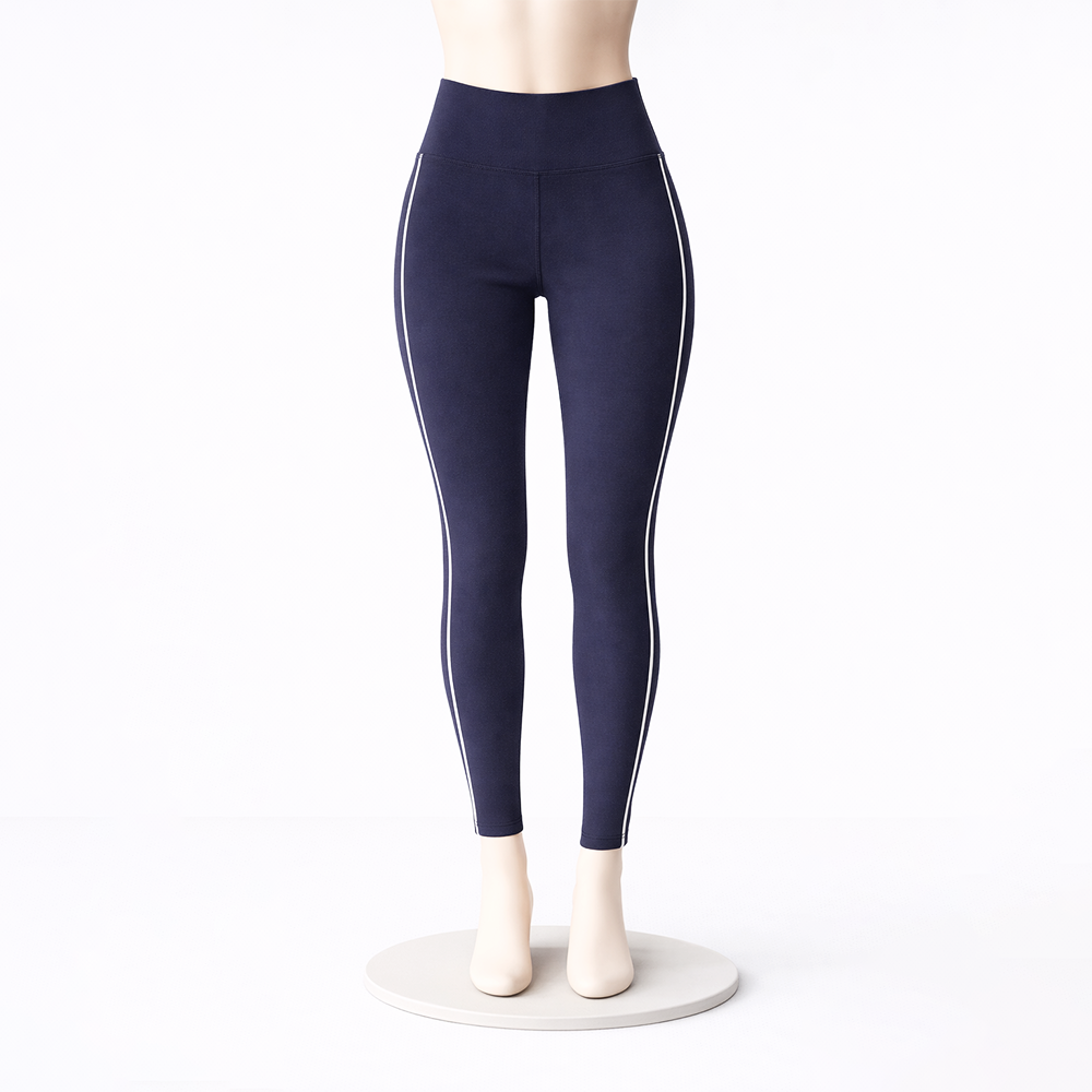 Stylish high-waist Lycra leggings featuring a white stripe design. Made with thick, non-see-through fabric that provides full coverage and a comfortable fit. Perfect for the gym or casual outings.