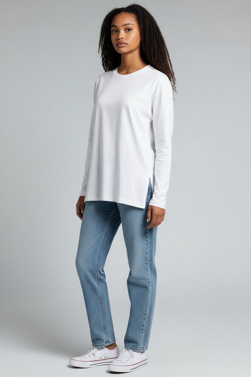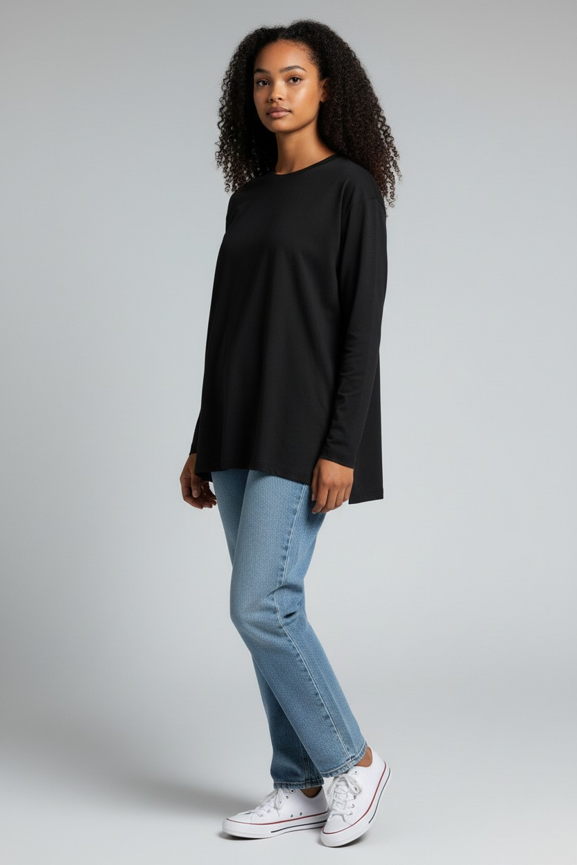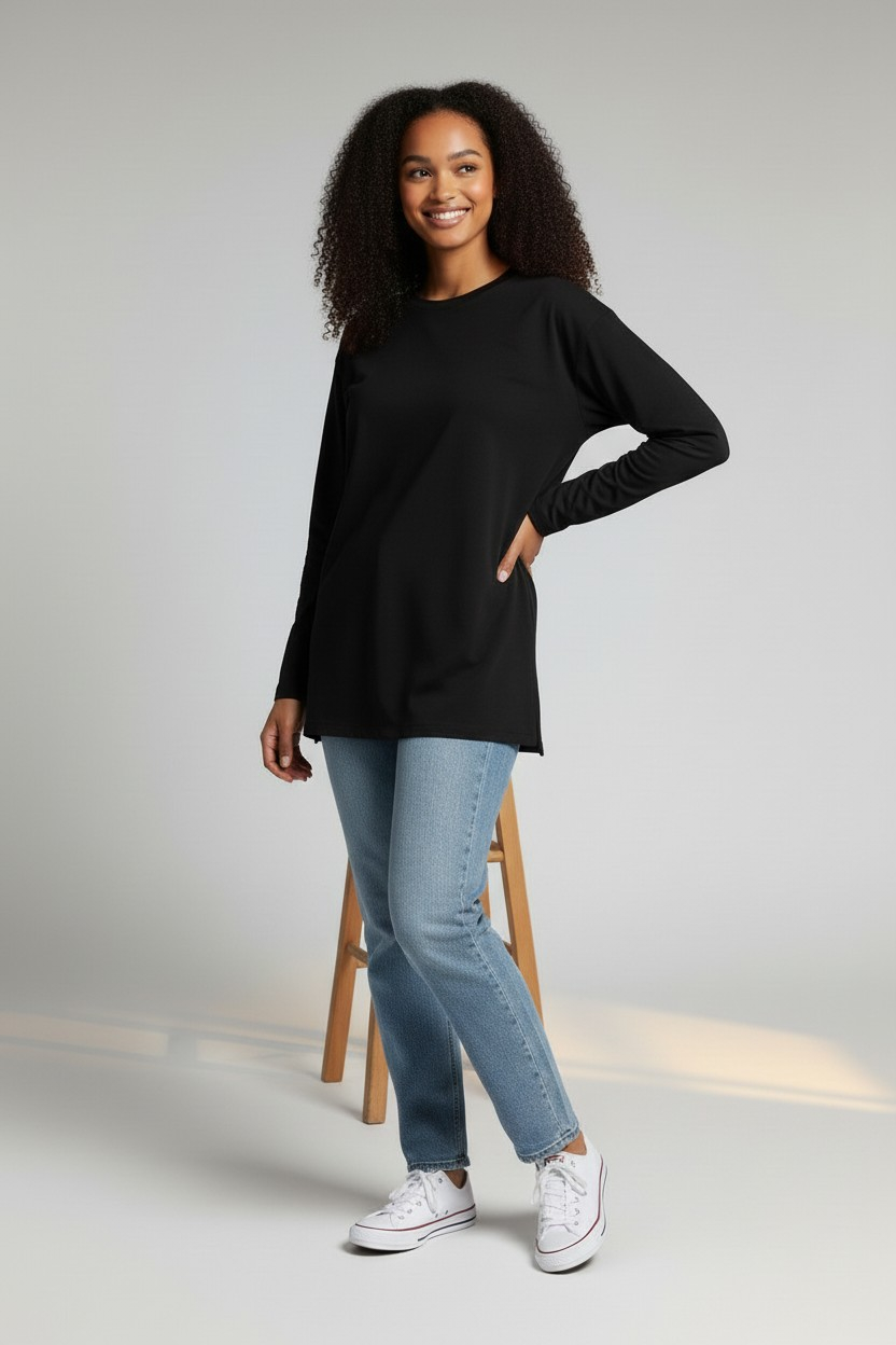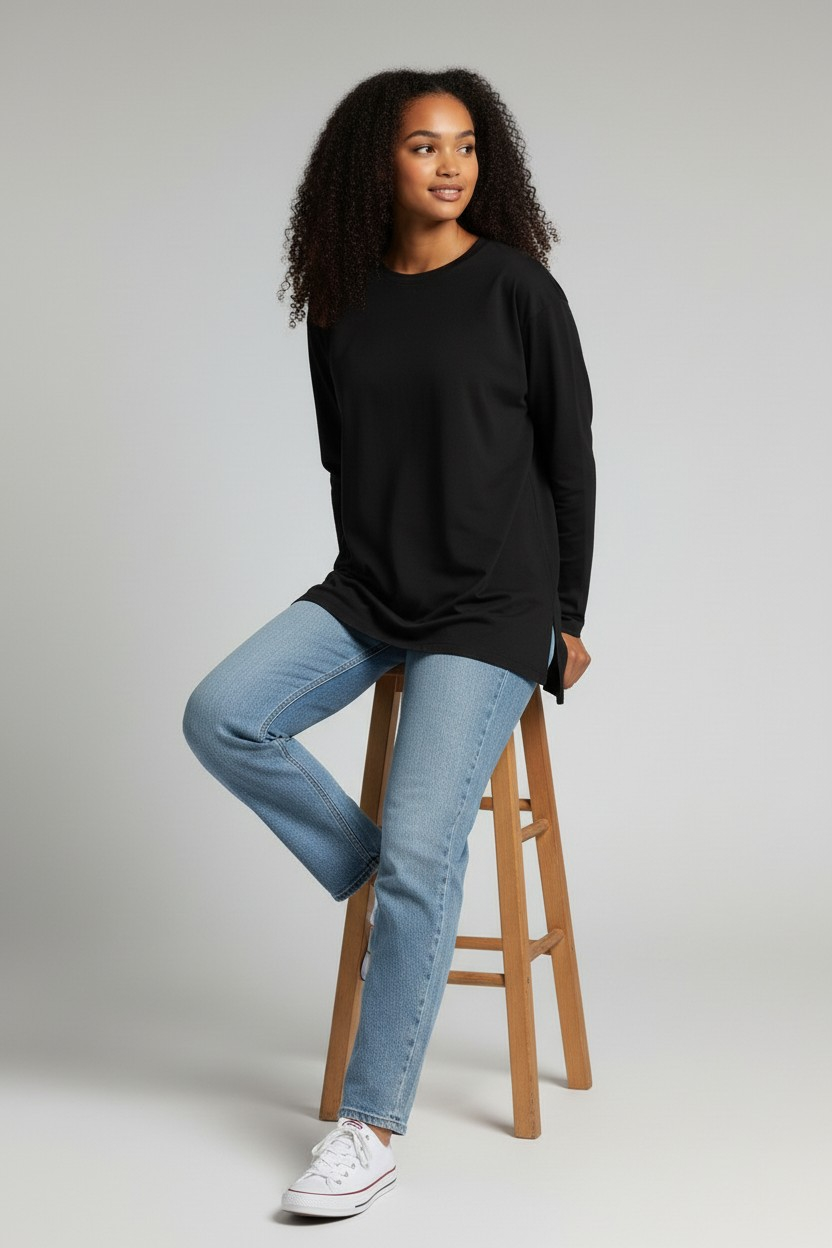 ✨ Trendy Oversized Fit: The Oversized Cotton Long Sleeve Top features a loose, comfortable cut with a stylish side slit for a unique touch. Thus, it provides perfect coverage and total freedom of movement without any restrictions.